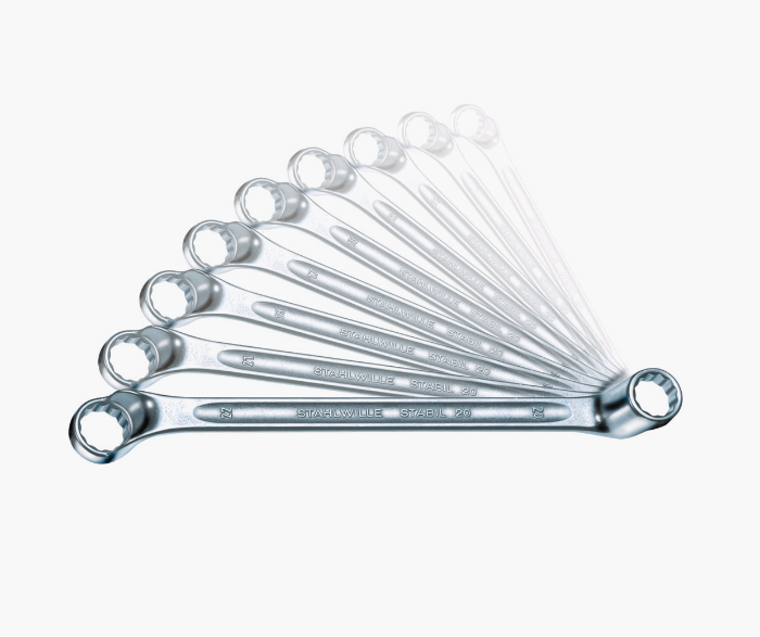 Dvostruki T-profil koji se koristi za STAHLWILLE viljuškaste i okaste ključeve štedi materijal tamo gdje nije potreban i jamči dvije stvari odjednom: vrhunsku stabilnost dimenzija i iznimno malu težinu, koju god veličinu ključa odabrali. Kao rezultat toga, kompleti alata tvrtke STAHLWILLE teže znatno manje. Ali to nije sve: dvostruki T-profil tvrtke STAHLWILLE dobro leži u ruci, omogućuje rad bez zamora i može se udobno i sigurno držati. Time se također povećava sigurnost korisnika.
