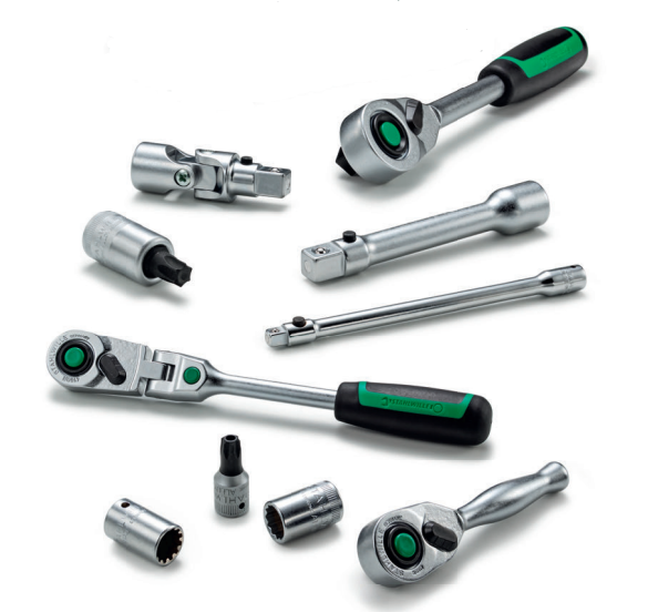 Stahlwille račne ili čegrtaljke, na primjer, dostupne su sa širokim izborom pogonskih dijelova, od čegrtaljki s finim zubima do standardnih čegrtaljki.