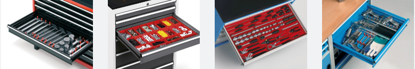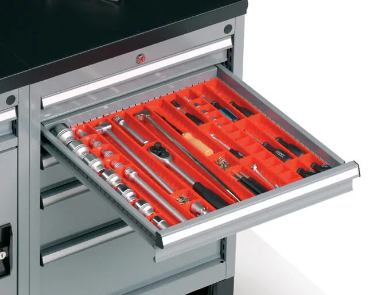 Sve ladice se mogu potpuno izvući (100%) na kugličnim ležajevima visokog otpora. Dostupni s različitim visinama prednjih strana, imaju nosivost od 70 kg i imaju provrte i utore koji olakšavaju unutarnju podjelu ladica za savršenu organizaciju alata i materijala.