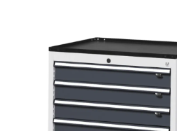 Ugradnja radne ploče čini gornji dio Flexa metalnog ormarića s ladicama čvršćim i robusnijim za izvođenje radova održavanja i drugih radova. Ormarić s ladicama može se opremiti plastificiranom pločom s 3 ruba koja štiti gornji dio ormarića, a svaki materijal koji se na njega stavi je spriječen od pada zahvaljujući podignutim rubovima.