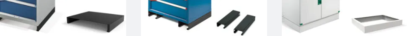 Glavni ormar za alate može se opremiti s dvije različite vrste baza kako bi se podigao s poda i omogućio pomicanje viličarima i paletnim viličarima. Oba omogućuju povećanje visine ormara za alat kako bi se prilagodio dimenzijama drugog namještaja i poboljšala udobnost rada. Baze za viličare i paletne viličare također olakšavaju premještanje industrijskog ormara unutar prostora. Dostupni kao jedna baza ili u paru, dostupne su i blende za zatvaranje kako bi se spriječilo nakupljanje prljavštine i dalo ujednačeniji izgled ormarića.