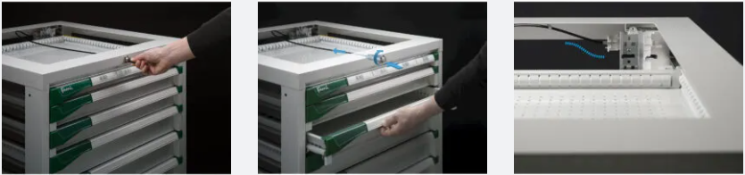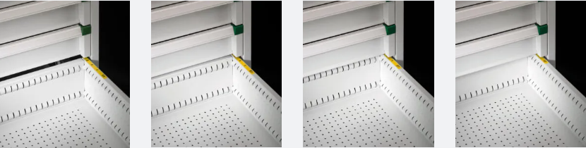 Profil ima otvore s razmakom od 25 mm - što omogućuje ugradnju većeg broja glava za zatvaranje. To omogućuje da se pristup ladicama podijeli u više grupa. Podjela na grupe je podesiva po visini
