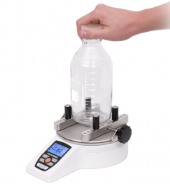 Ispitivači zakretnog momenta čepova serije TT01 dizajnirani su za mjerenje momenta postavljanja i skidanja čepova boca do 100 lbFin [11,5 Nm]. Podesivi stupovi učinkovito hvataju širok raspon oblika i veličina spremnika, dok su opcijske ravne i podesive čeljusti dostupne za jedinstvene profile.