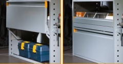 Podizna vrata za module širina 508 / 717 / 1016 / 1225 / 1524 mm, potpuno zatvaranje naročito podnih polica, otvaranjem se vrata podižu uz pomoć zglobnog mehanizma iznad police te na taj način omugućava potpuni pristup.
