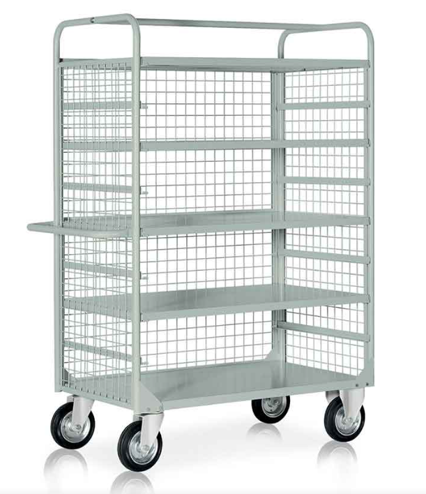 Kolica od čeličnog lima s 1 fiksnom i 4 uklonjive police i ručkom