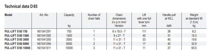 Nosivost: 750 - 10000 kg. Gotovo neograničene primjene u održavanju, rudarstvu, građevinarstvu, proizvodnji čelika, brodogradnji i komunalnim poslovima. Idealno za pomicanje i postavljanje teških strojeva i osiguranje teških tereta, pojednostavljuje postavljanje cijevi itd. u šahtovima i kanalima.