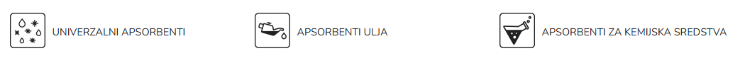 Upijajuće krpe, upijajući jastučići i setovi za upijanje, barijere, granulati samo su neki od široke palete proizvoda koji se mogu upotijebiti u hitnim slučajevima i u brojnim sektorima.Isto tako ovi proizvodi su dostupni u različitim formatima i sa specifičnim tehničkim karakteristikama kako bi zadovoljili najrazličitije potrebe za prikupljanje i zadržavanje tekućina.