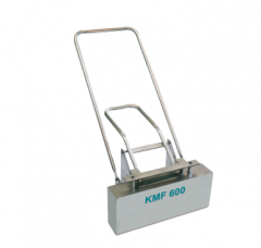 Magnet za čišćenje strugotine sa podova KMF može se koristiti za prikupljanje strugotine, špene, ostataka štancanje ili drugih feromagnetskih sitnih dijelova koji se vrlo teško mogu pomesti ili počistiti ručnim ili strojnim čistačima podova. Stalni sustav magneta s izrazito niskim magnetskim poljem smještan je u mobilnom, stabilnom kućištu od nehrđajućeg čeličnog lima. Kotači nisu smješteni bočno, već iza kućišta. Visina kotača može se podesiti i prilagoditi i neravnom terenu. Svi dijelovi kućišta izrađeni su od nehrđajućeg čelika, čistač ne zahtjeva održavanje i pogodan je i za vanjski rad. Preko papučice se isključuje magnetsko polje a prikupljene čestice padaju s uređaja. Ovi uređaji mogu se koristiti u pogonima strojne obrade, obrade metala, na gradilištima i u reciklažnim dvorištima.