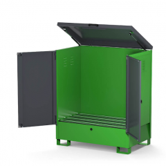 Komplet uključuje demontiranu garderobu i spremnik kapaciteta 200 litara. Savršeno za korištenje u onim radnim okruženjima gdje postoji potreba za sigurnim skladištenjem klasificiranih tekućina. Zahvaljujući nosačima u podnožju može se lako pomicati paletnim viličarom ili viličarom. Jednostavan za sastavljanje, omogućuje značajnu uštedu prostora kada se transportira ili skladišti rastavljen, zauzimajući samo volumen spremnika za zadržavanje.