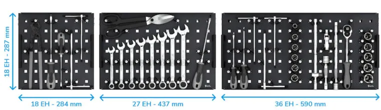 Za razliku od konvencionalnih termoformiranih kalupa, čija je proizvodnja i prilagodba dugotrajna, 5S Pikpad posuda za alat može se postaviti brzo i jednostavno. Nakon što su potrebni alati raspoređeni na perforiranu četvrtastu ladicu s rupama, samo postavite Unipok kuke kako biste sigurno učvrstili sav materijal.