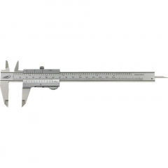 Pomično mjerilo od nerđajućeg čelika, dijelovi za očitanje mat kromirani bez odsjaja, zaustavni vijak s gornje strane + ergonomičan kliznik - DUO-FIX, utisnuta glavna skala, četiri načina mjerenja, uključena tablica navoja.