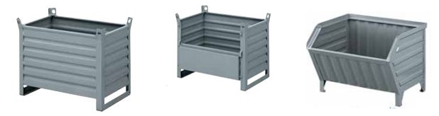 metalni kontejneri raznih dimenzija i tipova, zatvorene stranice od valovitog trapeznog lima, sa pola duže stranice na preklop, sa jednom stranom kosom i polu otvorenom. Moguće slaganje kontejnera jednog na drugi, moguće rukovanje viličarom, naročito pogodni u metalnoj industriji za skladištenje metalnih dijelova u fazi proizvodnje ili u skladištenju i transportu.