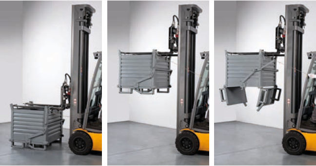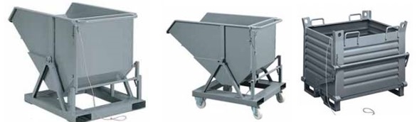 Nagibni kontejneri sa ili bez kotača, ili kontejneri sa otvarajućim dnom naročito pogodni za prikupljanje metalne strugotine u strojnoj obradi, moguća manipulacija viličarom, lagano pražnjenje zahvaljujući mogućnosti naginjanja ili otvaranja dna.