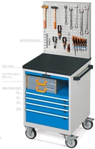Fronte ladica : plava, RAL 5012, ostatak siva boja, RAL 7035