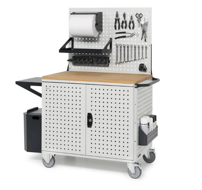 Moguće je zatvoriti bočne ili stražnju stranu kolica s perforiranim pločama, ili na radnu površinu dodati okomitu perforiranu ploču za različite držače alata za bolje korištenje okomitog prostora. Ploče su perforirane rupama kvadratnog oblika 10×10 mm, što znači da se mogu opremiti Unipok ili Iron Team priborom.