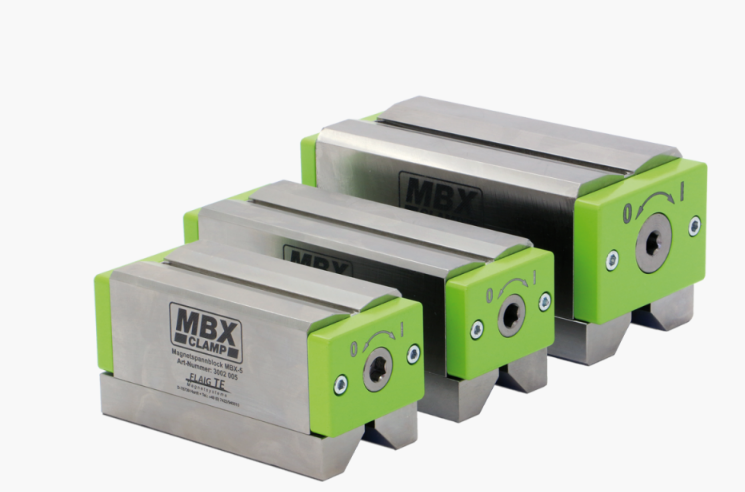 MBX magnetski stezni blokovi karakteristični su po tome što se aktiraju nasuprotne stezne strane. Namijenjeni su za stezanje izratka na čelične površine kao što su strojevi ili montažni stolovi. Nekoliko MBX blokova također se može spojiti zajedno preko unutarnjeg šesterokuta indeksne osovine, za stezanje dužih ili većih radnih komada.