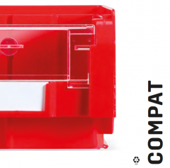 Serija Compat spremnika s prednjim otvaranjem idealno je rješenje za sve probleme skladištenja u skladištu, radionici ili na proizvodnim trakama. Omogućuju vam da sadržaj uvijek imate pri ruci i u punom pregledu, čineći ga lako dostupnim. Ove kutije mogu se složiti stabilno i sigurno, a materijal je jednako lako dostupan čak i kada su jedna na drugoj. Najveći spremnici opremljeni su prednjom poprečnom šipkom koja pomaže u sprječavanju bilo kakve deformacije bočnih stijenki zbog velikih opterećenja i olakšava prianjanje.