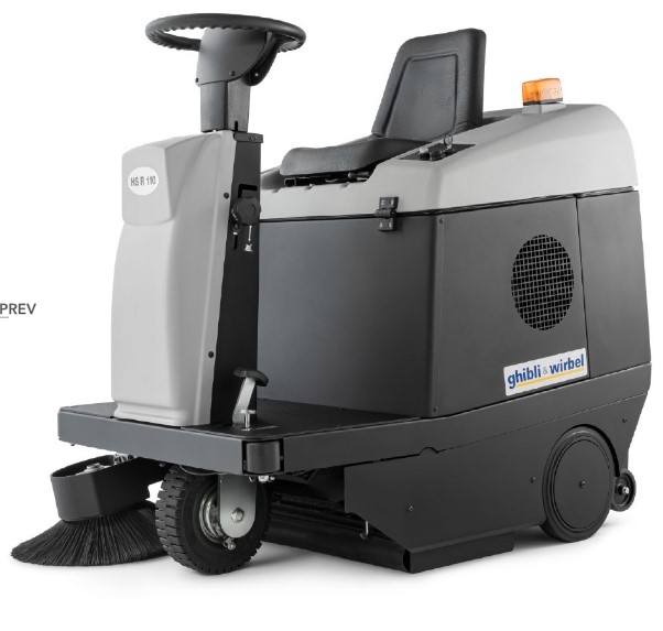 HS R 110 je kompaktni vozni stroj za pometanje idealan je za čišćenje srednjih i malih površina, čak i onih sa uskim prolazima. Velika širina čišćenja (860 mm) jamči izvrsne performanse čišćenja zahvaljujući produktivnosti od 6050 m² / h: glavnoj četki od 624 mm mora se dodati širina četke montirane na desnoj bočnoj ruci (kao standardna oprema).