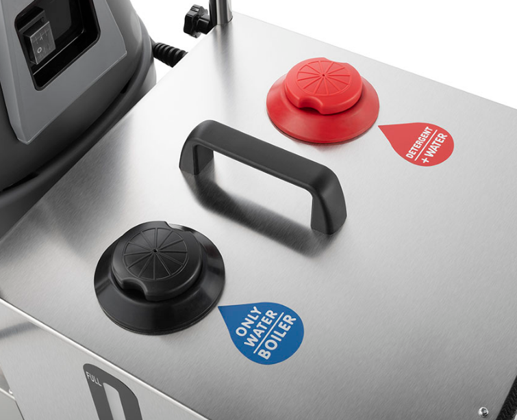 Tijekom dubljih postupaka čišćenja, za rješavanje najtvrdokornijih nečistoća, moguće je aktivirati funkciju deterdženta izravno s upravljačke ploče. Čvrst i otporan zahvaljujući strukturi od nehrđajućeg čelika i iznimno okretan zahvaljujući kolicima opremljenim ergonomskom ručkom i praktičnom košarom za predmete, S-Team 6 V idealan je za rad u Ho.Re.Ca, zdravstvenim, transportnim i javnim ustanovama.