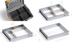 Aluminijski razdjelnici za plastične kutije STORE BOX 102, mogućnost naručivanja u kompletu (dvije kombinacije) ili pojedinačno, dodatna mogućnost naručivanja okvira od galvaniziranog čelika, protusklizne gumene podloge ili spužvastog uloška za poklopac.