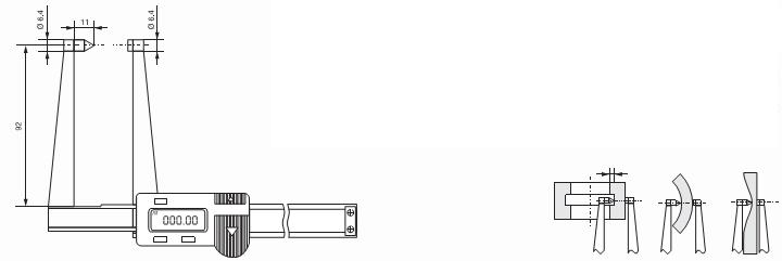Zbog šiljastog naslona i dugih mjernih vilica može mjeriti različite debljine stijenki na teško dostupnim mjestima, na primjer može mjeriti zakrivljene površine.