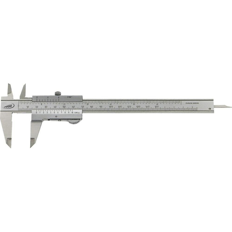 Pomično mjerilo od nerđajućeg čelika, dijelovi za očitanje mat kromirani bez odsjaja, zaustavni vijak s gornje strane + ergonomičan kliznik - DUO-FIX, utisnuta glavna skala, četiri načina mjerenja, uključena tablica navoja.