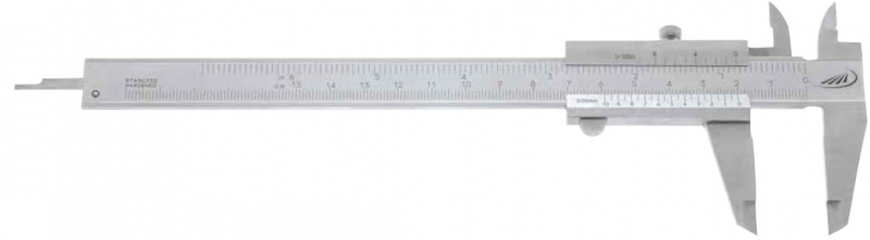 Pomično mjerilo izrađeno od nerđajućeg čelika, dijelovi za očitanje mat kromirani bez odsjaja, zaustavni vijak s gornje strane