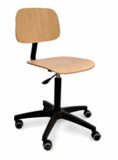 Stolac okretni za radni stol sa drvenim sjedalom i naslonom, na kotačima, podesivi po visini sa pneumatskim cilindrom