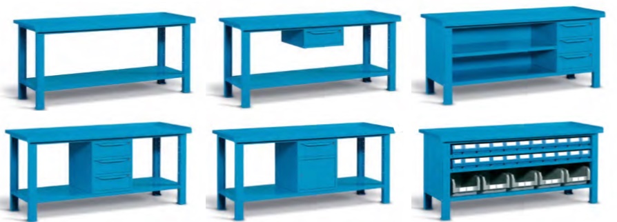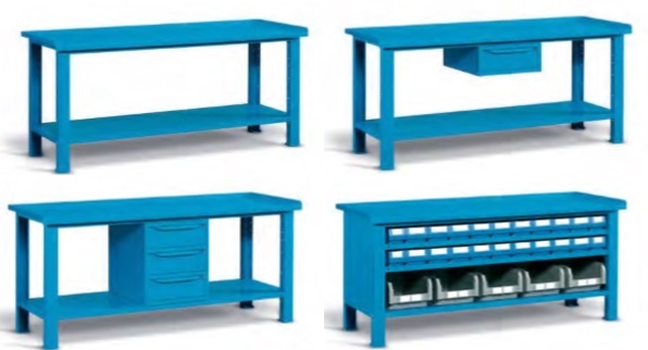 Radni stol izrađen u potpunosti od čelika dimenzija 2007 x 705 x 855 mm. Boja stola je plava (RAL 5012). Nosivost je 1000 kg.