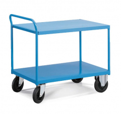 Praktična radionička kolica sastavljena od platforme i gornje površine od čelika s rubovima. Dvokatna kolica, serija Combi tvrtke Fami, savršena su u radionici, industriji i laboratoriju. Čelične police su savršene ako želite premjestiti alate i posuđe. Kotači su izrađeni od standardne gume promjera 200 mm. Ručka postavljena na jednu od dvije kraće strane olakšava pomicanje kolica u bilo kojem okruženju.