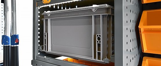 Držač, ležište za umetanje ATHENA polipropilenskih kutija, dostupno za module širine 508 mm i dubine 365 mm.