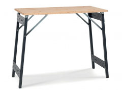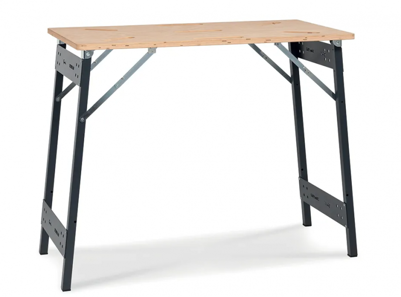 - sklopivi radni stol opremljen je praktičnim sustavom zatvaranja nogu koji omogućuje smanjenje ukupnih dimenzija prijenosnog radnog stola s 896 na 60 mm. Sigurnosna kuka omogućuje pričvršćivanje nogu u zatvorenom položaju kako bi se spriječilo njihovo slučajno otvaranje dok se radni stol pomiče. Ova vrsta sklopivog radnog stola idealna je za sve one kojima nedostaje dovoljno prostora za tradicionalni radni stol ili koji traže pokretno, ali čvrsto rješenje za siguran i slobodan rad bilo gdje.