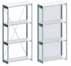 Sustavi polica dužina 1000/1300 mm, visine 2000 mm, dubine polica 300, 400, 500, 600 ili 800 mm. Police dubine 300 mm, bez ojačanja, nosivost svake police 120 kg, ostale dubine polica sa ojačanjima i nosivosti 300 kg po polici. Po svakom modulu/koloni dolaze 4 police, mogućnost naručivanja dodatnih polica.