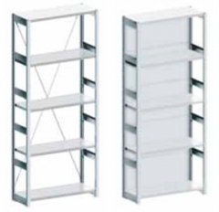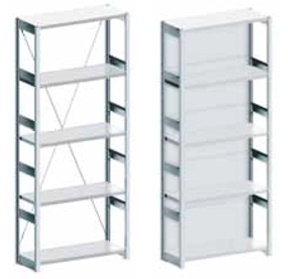 Sustavi polica dužina 1000/1300 mm, visine 2500 mm, dubine polica 300, 400, 500, 600 ili 800 mm. Police dubine 300 mm, bez ojačanja, nosivost svake police 120 kg, ostale dubine polica sa ojačanjima i nosivosti 300 kg po polici. Po svakom modulu/koloni dolazi 5 polica, mogućnost naručivanja dodatnih polica.