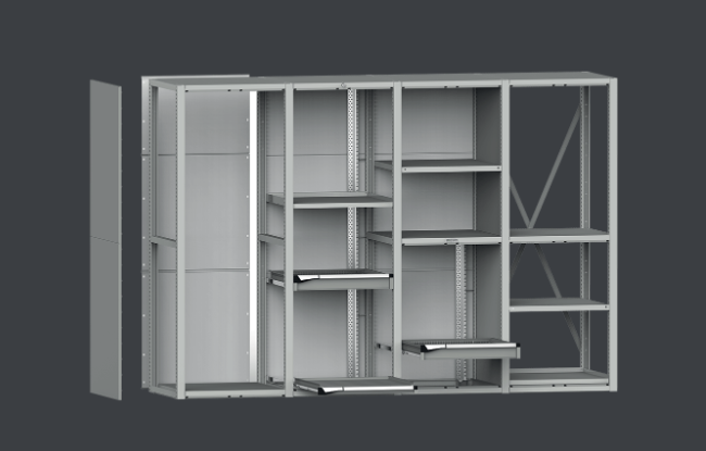 Bočni, srednji i stražnji paneli izrađene su od čeličnog lima, spojene zajedno čineu zatvorene odjeljke. Sigurnost sadržanog materijala zajamčena je mogućnošću ugradnje triju različitih tipova vrata: klizna vrata, krilna vrata i rolo vrata, sva opremljena cilindričnim bravama, dok krilna vrata mogu imati i bravu s numeričkom šifrom.