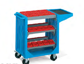 Uključuju: dva najlonska okretna kotača sa kočnicama promjera 125 mm, dva najlonska fiksna kotača promjera 125 mm,jedan okvir za nosač alata u tri reda, jedan par nosača, četiri okvira za nosač alata u jednom redu, četiri para nosača pod kutem, jedna polica, jedna gumena podloga.