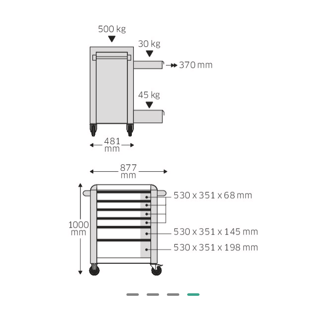 - 6 lako uklonjivih ladica (crna, RAL 9005) s punim izvlačenjem (370 mm) i vodilicom kaveza s kugličnim ležajem