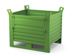 Limeni kontejneri s vratima koji omogućuju sigurno skladištenje industrijskih komponenti. Vrata olakšavaju pristup i odlaganje ili uklanjanje materijala. Mogućnost preklapanja više elemenata za povećanje mogućnosti skladištenja iskorištavanjem raspoloživog prostora po visini. Kapacitet 1.500 KG i klizači na dnu koji omogućuju jednostavno rukovanje paletnim viličarom ili viličarom.