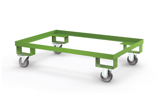 Okvir s kotačima za kontejnere; omogućuje vam da olakšate pomicanje limenih ili mrežastih kontejnera, nosači prisutni u strukturi omogućuju transport viličarom. Nosivost je do 800 kg, a dostupan je u više dimenzija.